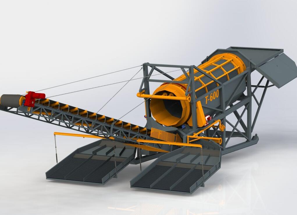 設備為一體式可進行組裝拆卸,為可移動式底座,設備移動非常方便。采用工程車輛就可以進行牽引拖動。 尾礦排棄系統為液壓升降式180°尾礦輸送桿,可以進行輸送距離調節和轉向輸送。大大節省了工程車對尾礦的處理,節省了生產成本。