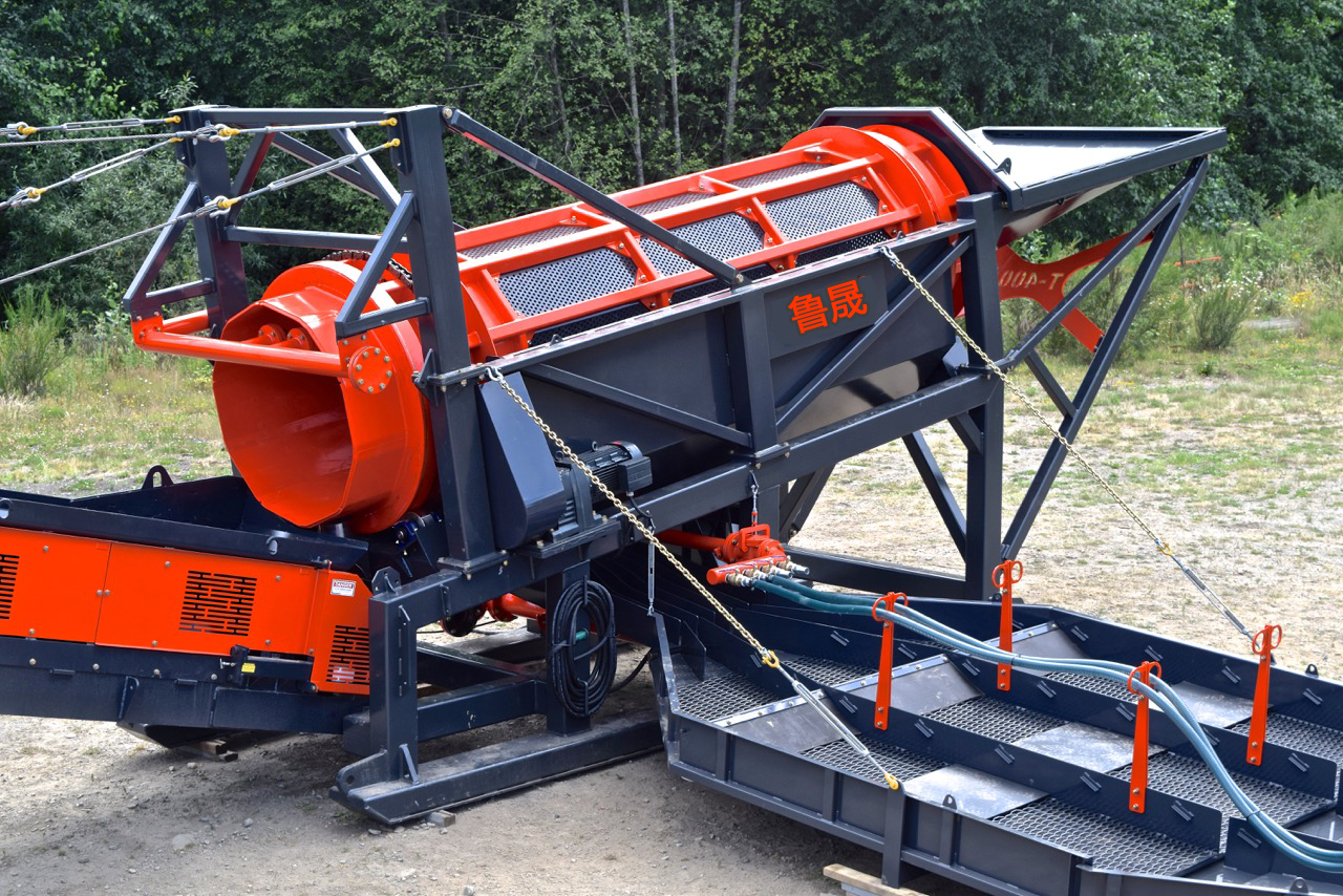 該設備是采用滾筒攪拌分離篩進行礦物的分離,將石子等廢料排出,沙料進入選金溜槽進行選金。然后再進行提純冶煉直到金磚或金條。 滾筒攪拌分離篩是采用特殊鋼骨結構打造,外網采用聚氨酯材質。篩孔尺寸可以定制。