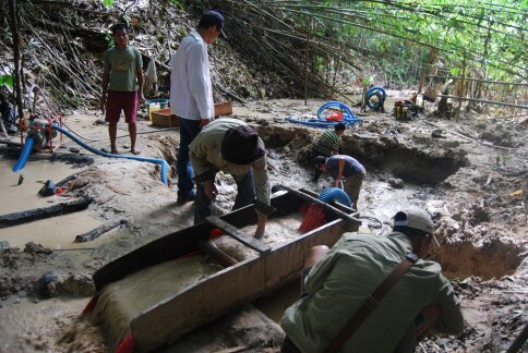 以下是劉總發(fā)來當(dāng)時(shí)人在開采沙金礦,和比較原始回收率低的簡(jiǎn)易工具: