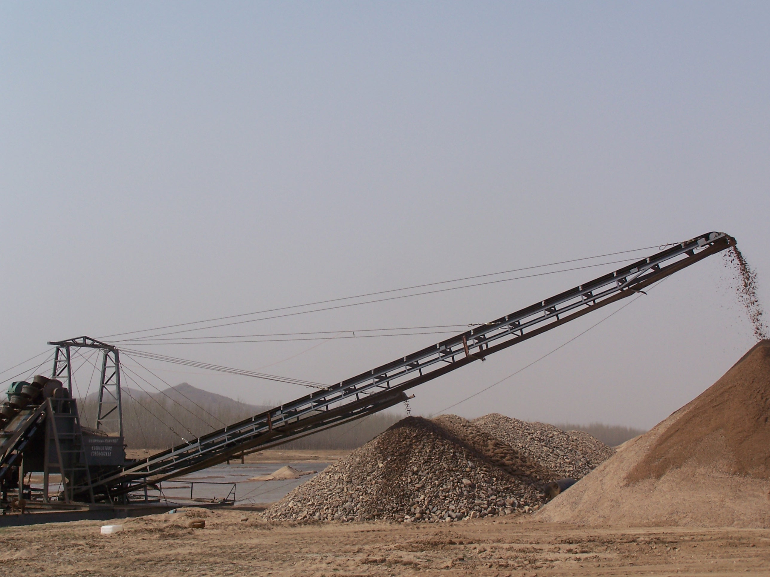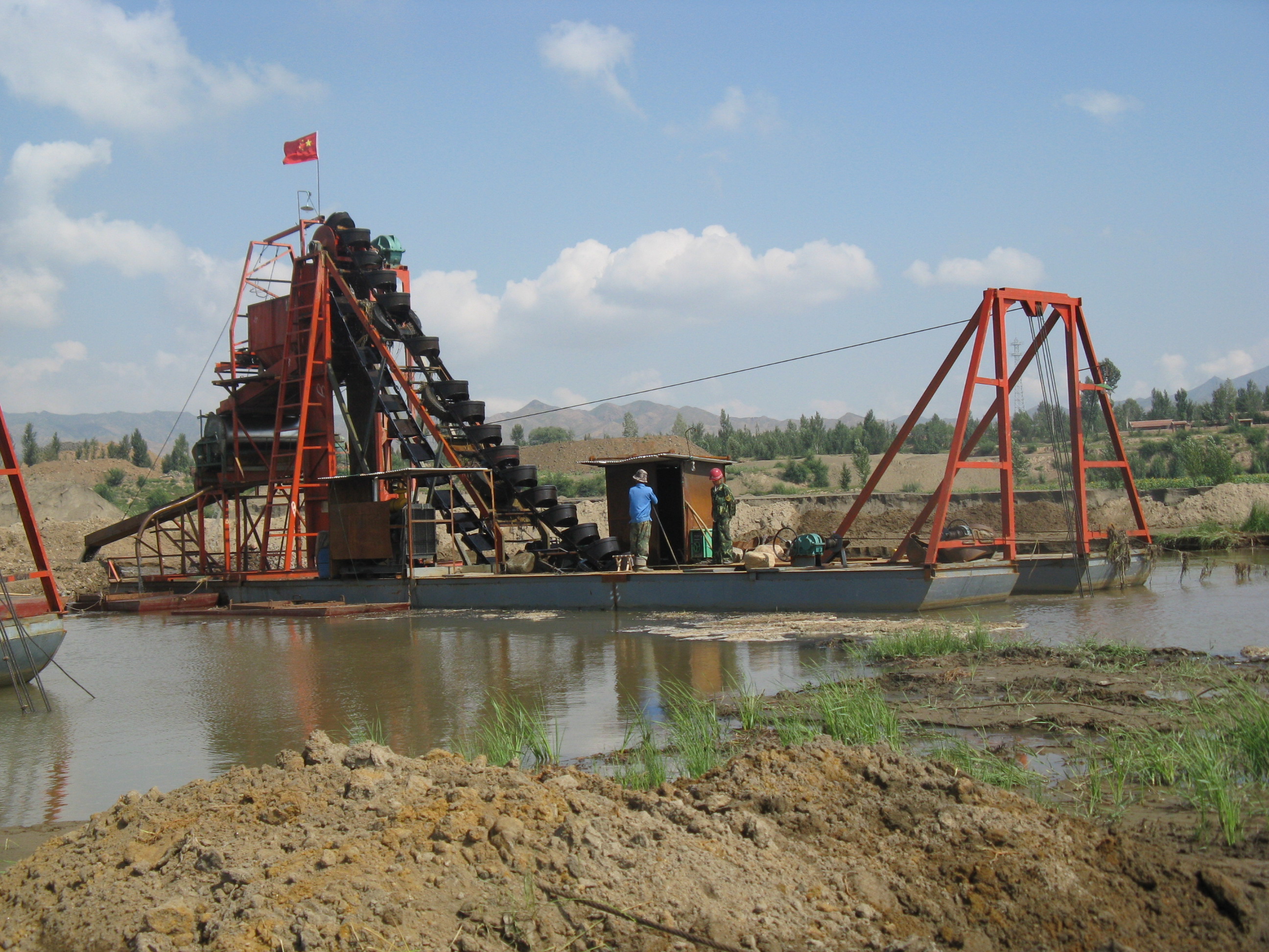 過清洗的沙子通過脫水篩進(jìn)行脫水,篩選出來的沙子可以直接堆放到船艙內(nèi)。船艙內(nèi)的下方有漏斗,沙子經(jīng)過漏斗可以排放到輸送帶上,然后通過輸送帶排放到岸上指定地點(diǎn)。小型的鏈斗式挖沙船為了節(jié)省空間,沒有配備洗沙脫水設(shè)備和大型的船艙,可以直接通過輸送帶傳遞到岸上進(jìn)行洗沙、脫水工作。鏈斗式挖沙船利用動(dòng)力帶動(dòng)鏈條裝置旋轉(zhuǎn),從而間接帶動(dòng)鏈斗轉(zhuǎn)動(dòng)作業(yè)。高錳鋼鏈條具有很強(qiáng)的承受力,可拉動(dòng)幾頓的重量。